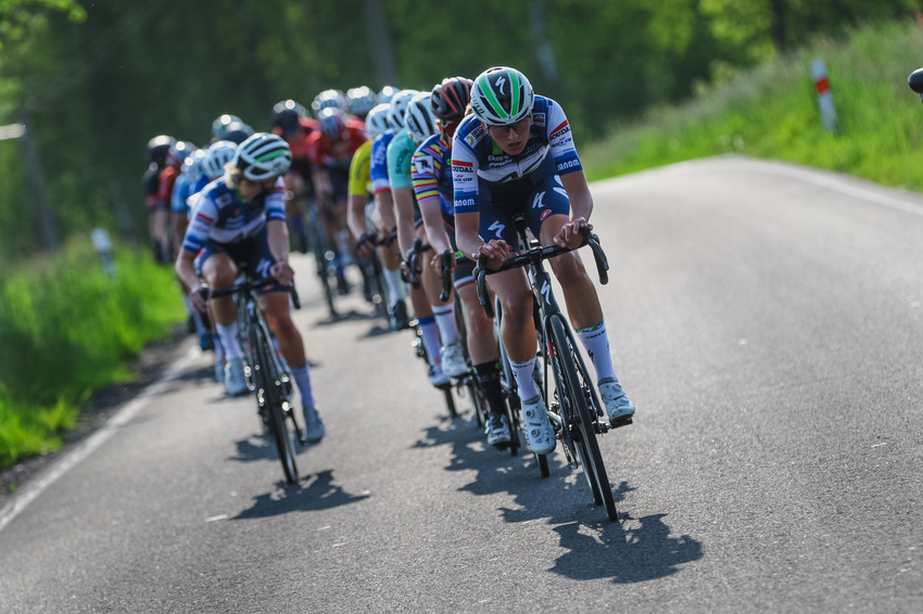 Nástup střídal nástup, ale stabilní únik se nevytvořil. Až v posledním stoupání dne přišel tvrdý útok Dominiky Wlodarczyk a Nikoly Noskové, nejlepší české vrchařky. V nástupu se s nimi udržela jen Julia Kopecký, osmnáctiletá česká cyklistka týmu AG Insurance-NXTG. Jejich náskok nebyl velký, takže zezadu k nim přijely i další závodnice, mezi kterými byla Olha Kulinič, ale třeba také Češky Kristýna Burlová a Eliška Kvasničková.